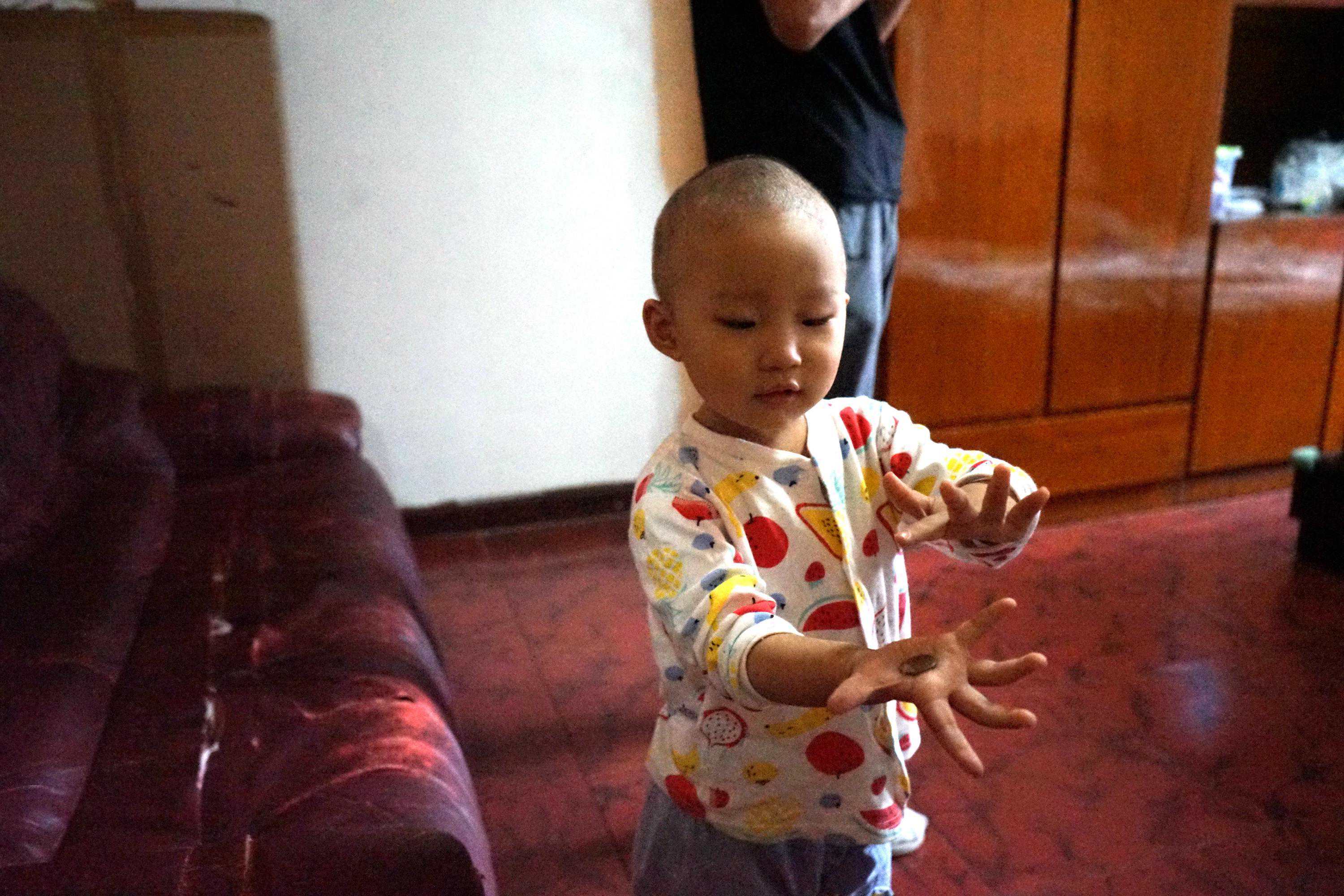 孩子们出生两个月的时候,那天是大年三十的上午,俩孩子吐奶,流鼻涕打喷嚏,送医院检查确诊肺炎。由于孩子们太小,医生按着他们从脖子里抽血,他们俩哭的撕心裂肺,我也跟着哭。我在心里不停地自责,怪我没有照顾好他们两个。孩子们出生后的第一个新年,我们就这样在医院里度过了。等孩子们长到一岁4个月时,都会走路了,我老公也能出去上班了,本以为贫困的日子慢慢会好转,谁知更大的灾难降临到了我们本就贫寒的小家。