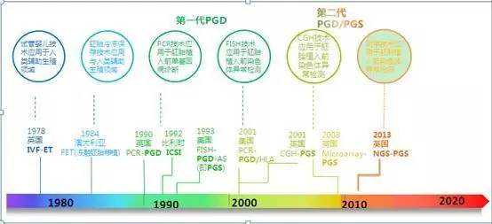 1967年,首次提出了PGD的概念。经过了半个世纪,PGD已从基于PCR技术和FISH技术的第一代发展至基于CGH技术和测序技术的第二代PGD/PGS。1990年,世界首例PGD婴儿诞生。截止2010年,全球得益于PGD和PGS技术诞生的婴儿大约有10000多例。