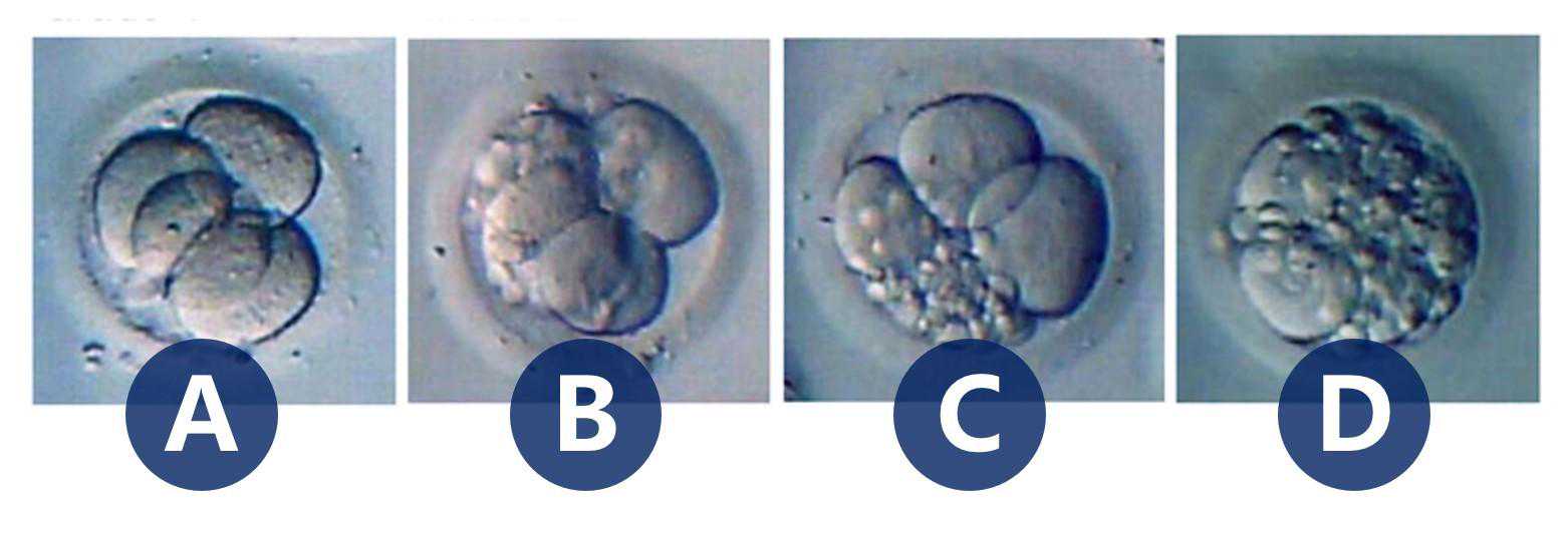 这些胚胎卵裂球折光正常、大小均匀,外形规整,透明带完整,碎片量少于10%或者没有,是试管婴儿术中最理想的胚胎。