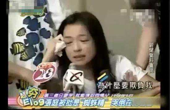 但她曾经因为跟林瑞阳在一起而备受争执!林瑞阳曾经被称为“台湾第一小生”,他的前妻是曾哲贞,曾是台湾红极一时的影坛学生情人,出演过《婉君》中的兰萱。曾哲贞比林瑞阳小9岁,结婚时她刚满20岁,两人生有一子一女。所以刚开始与张庭恋情曝光之后,张庭就被人称为“小三”,舆论都直指张庭,张庭还曾在记者会上哭到晕厥。