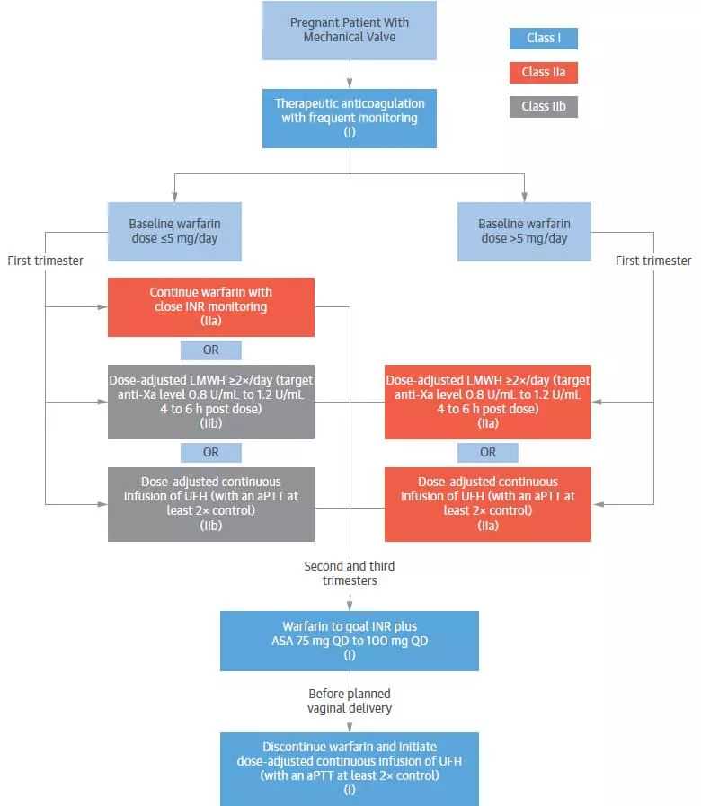 图2.置换机械瓣膜的孕妇孕期抗凝药物选择。