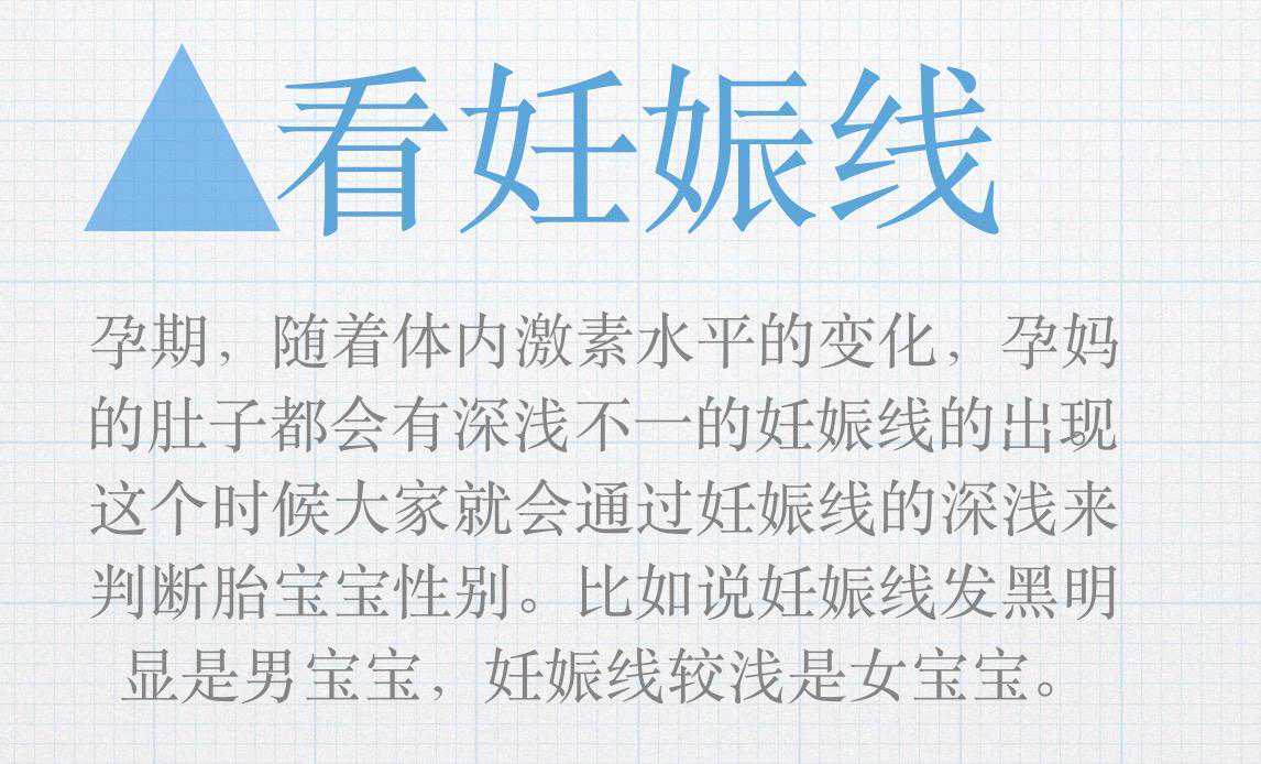 其实胎儿的性别可以检测出来,但是需要医疗的方法,大家也都知道胎儿性别鉴定这是违法行为!平时大家通过上述这样的测试其实没有任何的依据。比如说妊娠线的深浅,没有具体的对比,所以也就不能确定胎儿的性别了。所以孕妈们应该把重心放在孕期如何可以摄入更多营养,孕期如何胎教等等的问题上。