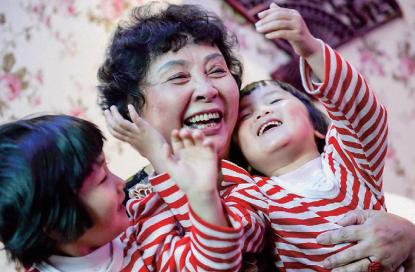 今年已经71岁的盛海琳,平时去学校接送11岁的双胞胎孩子上学时,时常会听到路人这样问话:“真是对可爱的小姐妹,这是您的孙女吗?”