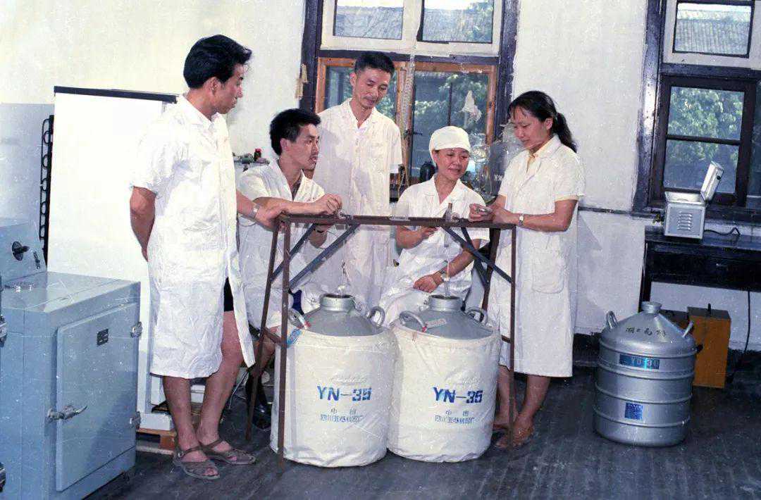 ▷1983年卢光琇(右一)构建的早期改良冷冻精子库