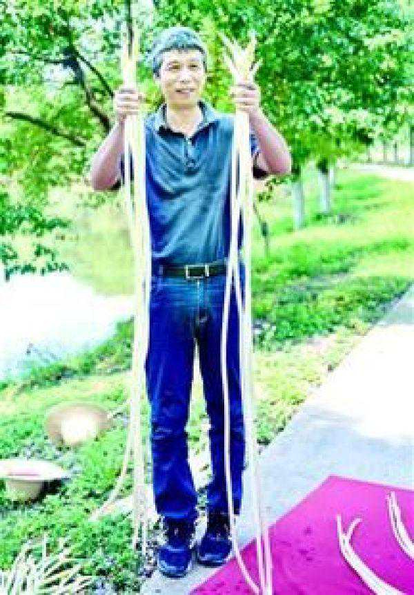 “你们来得正好,快来看看我们培育的藕带专用新品种。这三根藕带重达708克,达到了我们的预期,马上就可以推广了。”7月3日上午10时许,太阳很大,位于武汉市江夏区郑店街的国家种质武汉水生蔬菜资源圃一处试验藕塘边,56岁的柯卫东手抓两把藕带,兴奋地向记者“炫耀”。