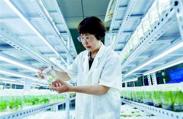 图为:武汉市农科院蔬菜研究所实验室试管中的蔬菜新品种