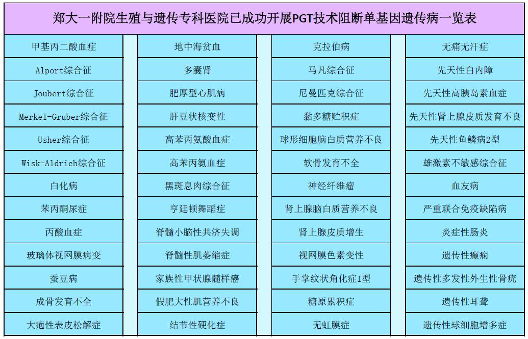 附2:郑大一附院生殖与遗传专科医院成功开展遗传病植入前阻断一览
