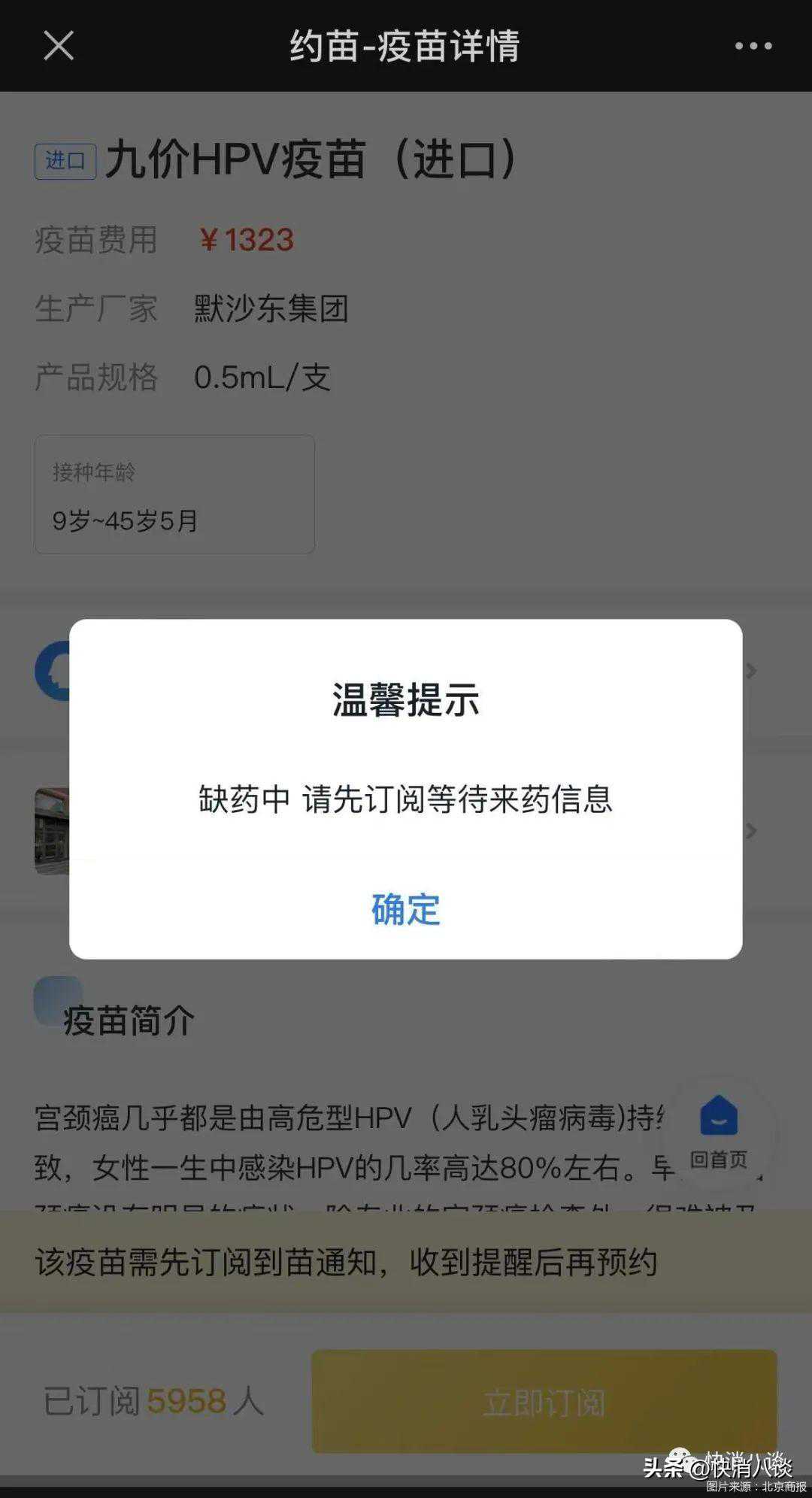 如今两年过去了,关于九价HPV疫苗的“神话”仍旧没有破灭。“最近一次放量在9月19日中午11点,需要自己去网上抢号。抢不到就继续抢,后面跳出的温馨提示会给出下次抢号的具体时间。”对于目前预约的情况,北京某社区卫生服务中心预防保健科相关工作人员如此说道。