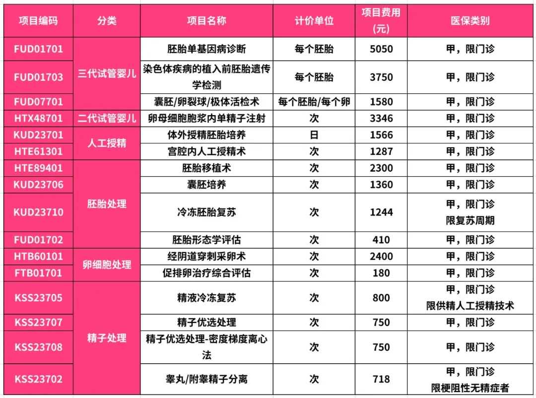 1.辅助生殖技术纳入医保门诊报销了!近日,北京市医保局会同市卫生健康委、市人力社保局印发《关于规范调整部分医疗服务价格项目的通知》中将门诊治疗中常见的宫腔内人工授精术、胚胎移植术、精子优选处理等16项涉及人群广、诊疗必需、技术成熟、安全可靠的辅助生殖技术项目纳入医保甲类报销范围。