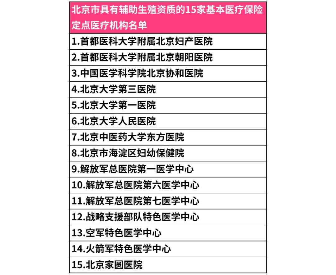 北京具有辅助生殖资质的基本医保定点医疗机构有15家,分别是: